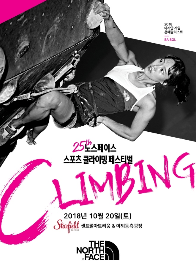 노스페이스와 대한산악연맹이 공동 주최하는 ‘제25회 노스페이스컵 전국 스포츠클라이밍대회’는 오는 20일 스타필드 고양의 센트럴 아트리움과 야외동측광장에서 열린다. 대한체육회, 국민체육진흥공단이 후원하고 스타필드 고양, 게코킹이 협찬한다.
