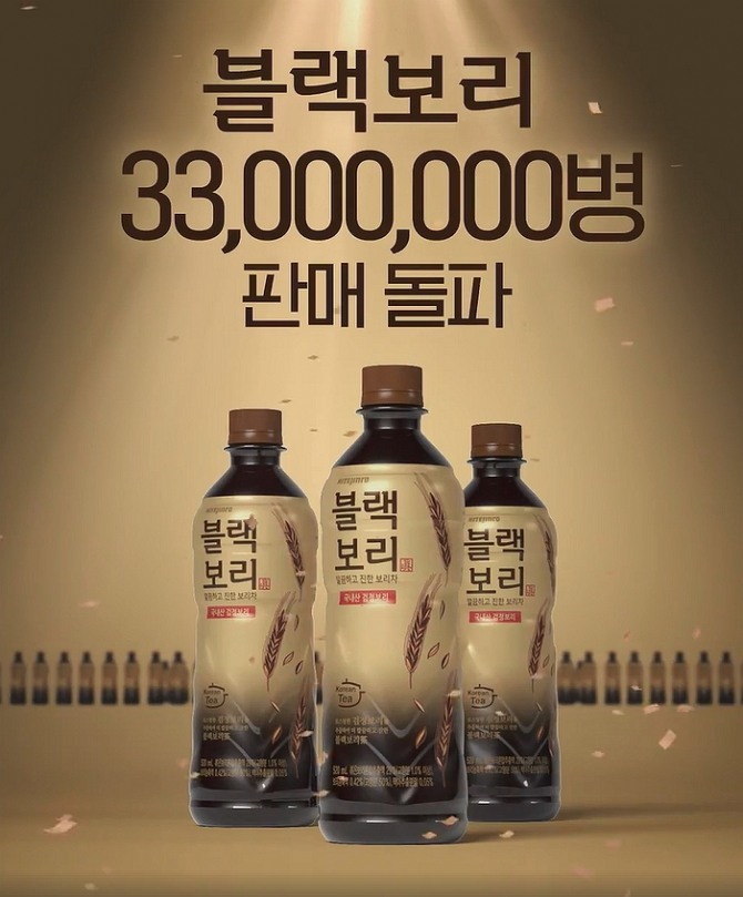 이미지 확대보기국내 최초로 국내산 검정보리를 사용한 ‘블랙보리’는 지난해 12월 출시 이후 소비자들의 큰 호응을 얻으며 단숨에 국내 보리차 시장의 새로운 강자로 떠올랐다. 출시 시점이 음료시장 비수기임에도 불구하고 출시 6개월 만에 2000만병(340mL 환산) 판매를 돌파했고, 9월 말까지 누적판매량 3300만 병(340mL 환산)을 기록했다.