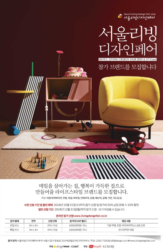 이미지 확대보기‘제25회 서울리빙디자인페어’는 오는 12월 31일까지 전시에 참가할 리빙&라이프스타일 브랜드 및 기업, 디자이너를 모집한다고 10일 밝혔다.