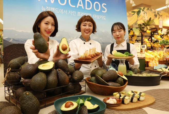 이마트는 오는 20일부터 뉴질랜드 아보카도(2입)를 4980원에 전국 이마트에서 판매한다고 밝혔다. 뉴질랜드 아보카도 협회와 홍신애 쉐프가 함께 개발한 ‘아보카도 스무디’, ‘아보카도 통식빵 샌드위치’, ‘아보카도 묵은지 초밥’ 세 가지 요리법을 고객들에게 선보일 예정이다.
