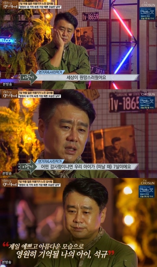 이날 이광기는 자신의 인생에 있어 너무도 큰 상처가 됐던 큰아들 석규 군의 이야기를 꺼냈다. 2009년 신종플루가 유행했을 당시 7살 나이였던 석규 군이 허망하게 세상을 떠났기 때문.