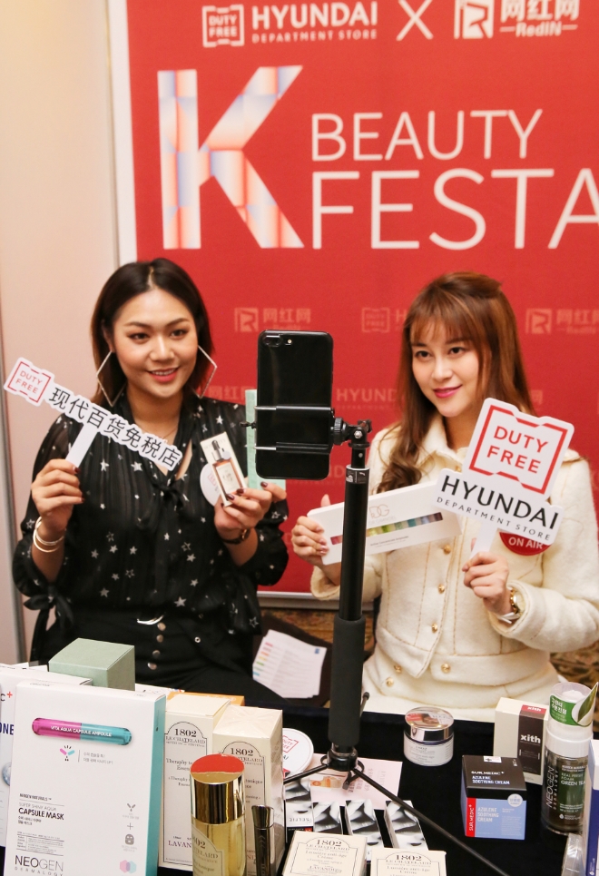 현대백화점면세점은 23일 서울 강남구 청담동 프리마 호텔에서 중국 왕홍 기획사인 ‘레드인 왕홍왕’과 손잡고 K-뷰티 브랜드 100여개와 중국 파워블로거인 왕홍(網紅) 66명이 참여하는 ‘K-뷰티 페스타’를 진행한다고 밝혔다.