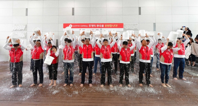 ‘아이스버킷 챌린지’는 차가운 얼음물을 뒤집어 쓸 때 잠시나마 근육이 경직되는 경험을 통해 루게릭병에 대한 관심을 환기시키고 동시에 환우들을 돕기 위한 릴레이 기부 캠페인으로 지난 2014년부터 전 세계적으로 확산되고 있다. 롯데그룹은 지난 7월 롯데월드를 시작으로 이번 롯데지알에스가 7번째 주자로 나섰다. 이갑 대홍기획 대표의 지명으로 참여하게 됐다.