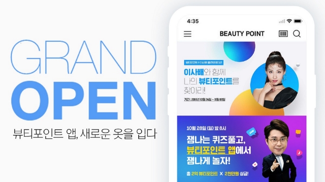뷰티포인트 앱에서는 뷰티 인플루언서 이사배와 콜라보레이션 한 이벤트가 2차례 진행된다. 1차 이벤트로는 ‘이사배와 함께 나의 뷰티포인트를 찾아라!’가 다음달 9일까지 진행되며, 이벤트 참여시 추첨을 통해 2만~ 100만 뷰티포인트가 증정된다. 다음달 21일부터 오는 12월 4일까지 진행되는 2차 이벤트에서는 ‘이사배와 함께 만든 뷰티포인트 박스! 득템 미션 이벤트’에 응모하면, 이사배가 직접 큐레이션 한 ‘뷰티포인트 박스’가 추첨을 통해 제공된다.