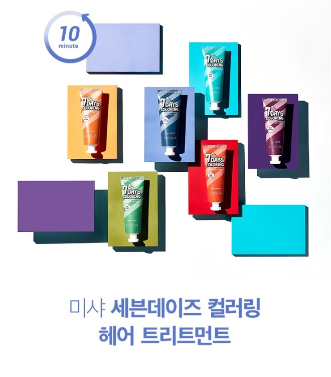 사용법은 매우 간단하다. 머리를 감은 후 수건으로 물기를 닦아내고 내용물을 머리에 골고루 발라준다. 5~10분 후 미온수로 헹구기만 하면 원하는 컬러를 연출할 수 있다. 단, 모발이 완전히 마르기 전에는 물빠짐 현상이 있을 수 있어 주의해야 한다. 미샤 세븐데이즈 컬러링 헤어 트리트먼트의 가격은 5500원, 용량은 50㎖다.