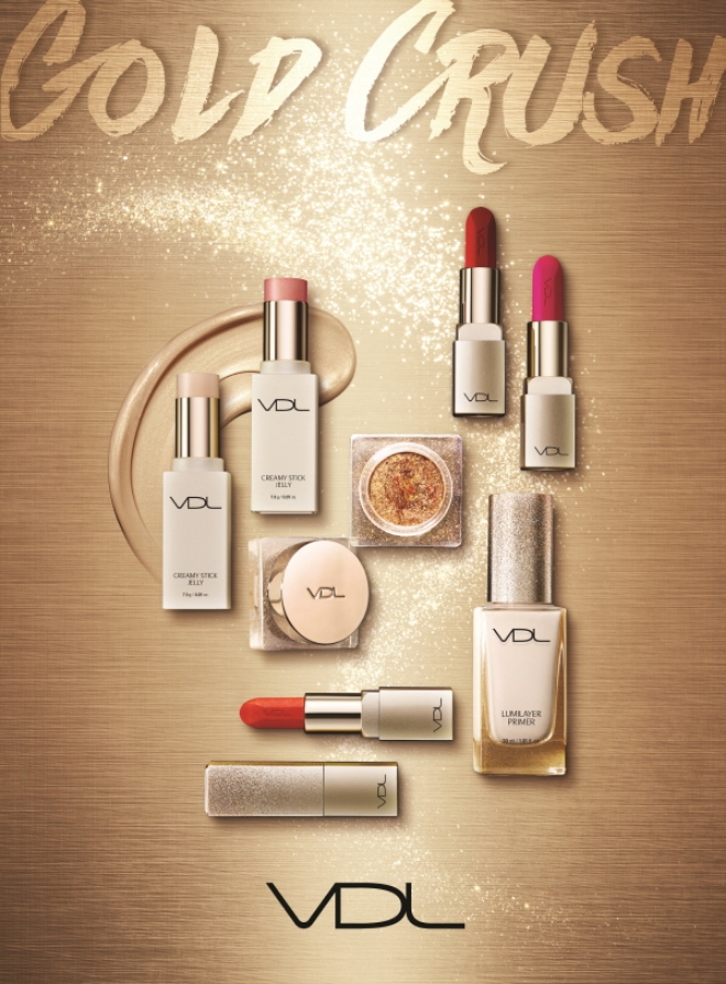 VDL의 홀리데이 컬렉션 ‘GOLD CRUSH’는 기존 VDL 베스트셀러인 프라이머, 치크, 립 아이 메이크업 제품 등에 고급스러운 색감의 샴페인 골드와 세련된 메탈 재질을 적용시켜 VDL만의 골드 패키지로 재탄생시켰다.