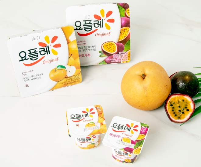 ‘요플레 오리지널 배, 패션프루트’는 한국인이 가장 사랑하는 과일 중 하나인 ‘배’와 최근 젊은 세대에 호응을 얻고 있는 ‘패션프루트’를 국내 최초로 떠먹는 발효유로 구현했다.