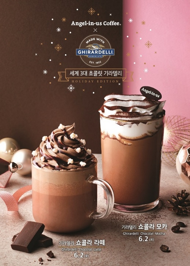이미지 확대보기엔제리너스커피는 겨울철 시즌 음료로 160년 전통의 세계 3대 초콜릿 브랜드 기라델리를 활용한 신제품 2종을 내년 1월 31일까지 한정 판매한다고 밝혔다.