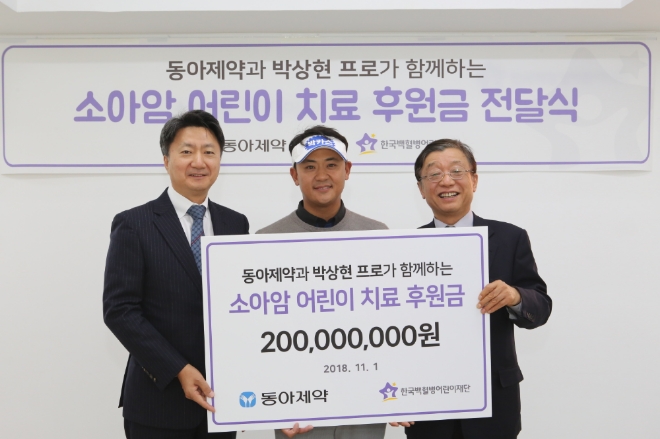 박상현 선수는 “두 아이를 키우는 아빠로서 또 후원사인 동아제약에서 사회공헌활동을 많이 하는 모습을 보고 기회가 된다면 함께 치료에 어려움을 겪고 있는 어린이를 돕고 싶었다”며, “저의 작은 마음이 소아암 어린이와 가족들에게 꿈과 희망을 이어가는 데 보탬이 되었으면 좋겠다”고 전했다.