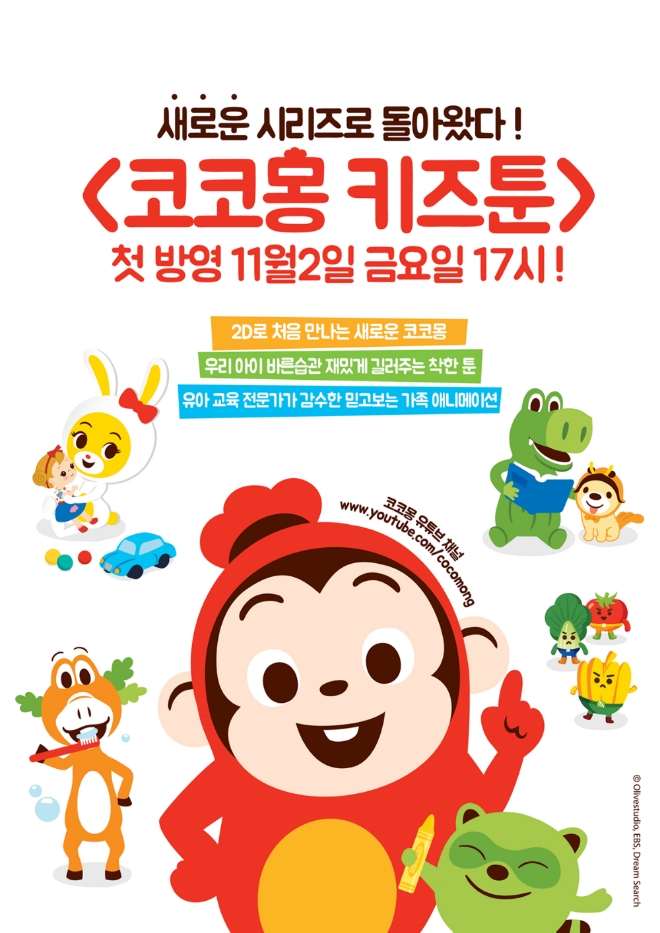 이미지 확대보기이랜드는 애니메이션 제작사 올리브스튜디오의 대표 캐릭터 코코몽이 코코몽 유투브 채널을 통해 새로운 시리즈로 돌아왔다고 2일 밝혔다.