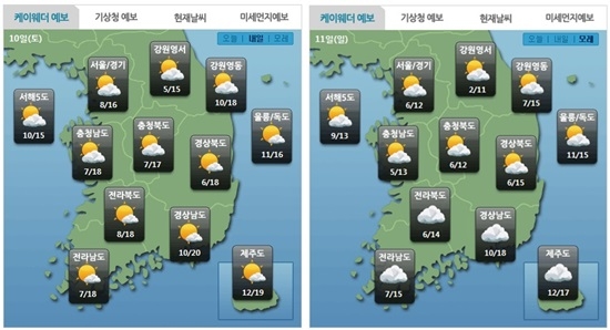 기온은 평년과 비슷하거나 높겠다. 아침 최저기온은 2∼11도, 낮 최고기온은 14∼20도로 예상됐다. 서울은 최저 8도, 최고 16도이다.