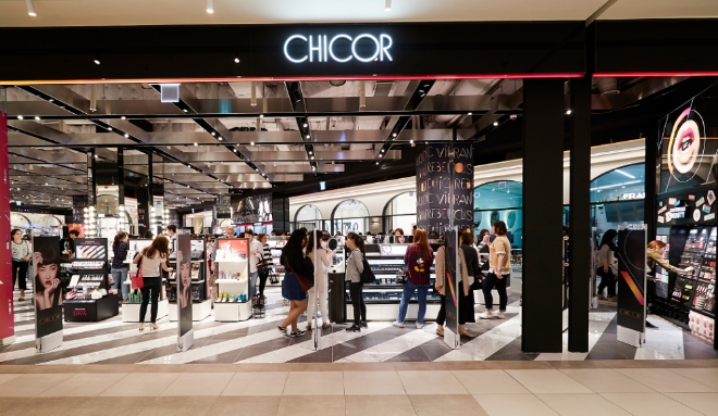 이번 시코르 매장은 면세점을 방문하는 외국인 관광객의 수요가 높다는 지역적 특성이 크게 반영됐다. 중국인들에게 인기 있는 3CE, AHC, 파뮤, 클레어스, 라곰 등 K뷰티 브랜드의 비중을 기존 시코르 매장보다 약 20% 정도 늘렸다. 시코르 신세계 본점에 입점한 국내 화장품 브랜드 비중은 60%로 절반 이상이다.