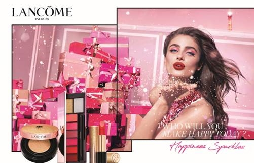 랑콤의 ‘2018 해피니스 스파클 컬렉션’은 로즈 핑크 컬러의 골드 케이스에 반짝이는 밤하늘의 별을 연상 시키는 금빛 글리터가 더해진 화려한 패키지가 특징이다. 연말 파티에서 빛나는 메이크업을 완성시켜 줄 ‘홀리데이 쿠션 컴팩트’와 ‘홀리데이 압솔뤼 루즈’, ‘홀리데이 립 아트 팔레트’를 비롯해 메이크업에 은은한 화사함을 더해줄 ‘홀리데이 로즈 스파클링 파우더’까지 총 4종으로 구성됐다.