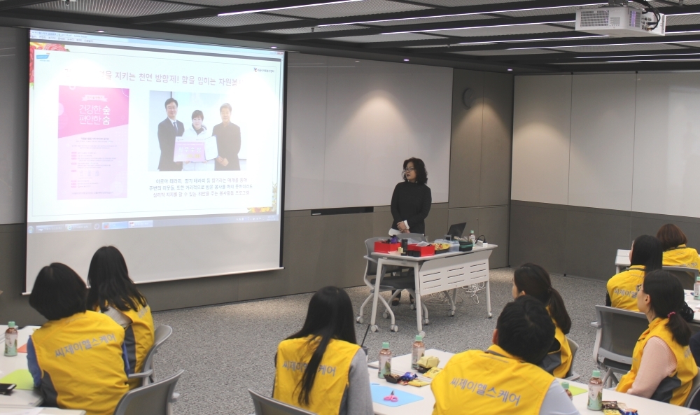 이미지 확대보기CJ헬스케어는 지난 16일 CJ헬스케어 본사에서 CJ헬스케어 임직원들은 심리적으로 안정이 필요한 주변 이웃들을 위한 천연 방향제 ‘아로마 롤온’을 만들었다고 19일 밝혔다.