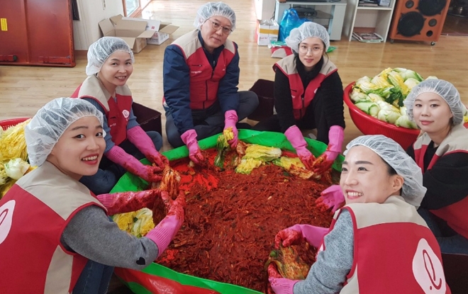 앞선 14일에는 롯데푸드 천안공장 샤롯데봉사단이 충남 천안의 경로당에서 김장 김치와 수육을 만들어 어르신들에게 대접했다. 독거노인 가정을 직접 방문해 김치를 전달하기도 했다. 또한 지난 17일에는 롯데푸드 청주공장 샤롯데봉사단이 충북 청주의 저소득층 가정을 찾아 총 1000장의 연탄과 식료품을 전달했다.