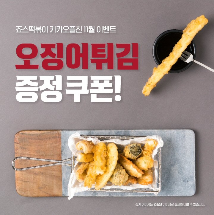 이미지 확대보기죠스떡볶이는 카카오톡 플러스 친구를 대상으로 오징어 튀김 무료 쿠폰 증정 프로모션을 진행한다고 23일 밝혔다.