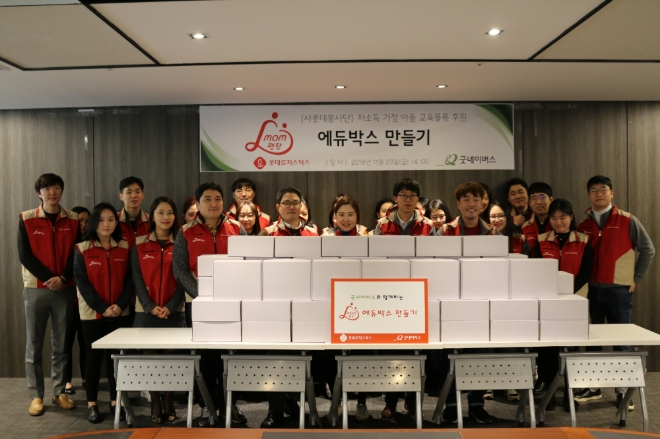 ‘mom편한 에듀박스 만들기’는 양질의 교육을 받기 어려운 환경에 있는 저소득 가정 아동을 위해 교육물품(학용품, 생필품 등)이 담긴 에듀박스를 임직원들이 직접 제작하고 전달하는 활동이다.