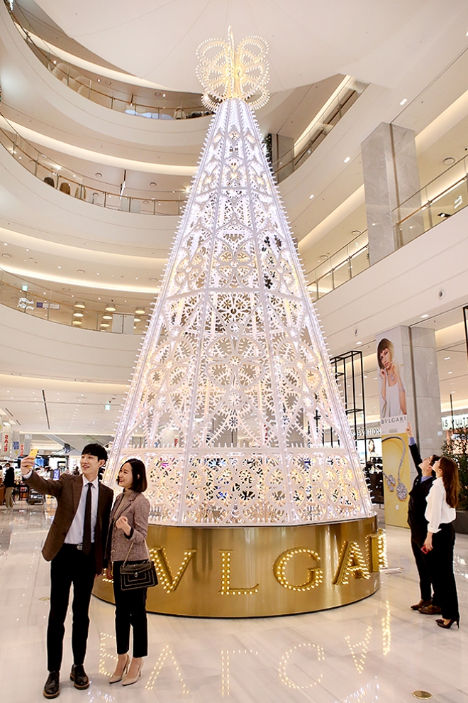 이번에 선보이는 트리는 불가리가 최근 새롭게 선보인 주얼리 컬렉션 '피오레버'를 주제로 만들어졌으며, 판교점과 아랍에미레이트연합(UAE) 2개국에만 전시될 예정이다.