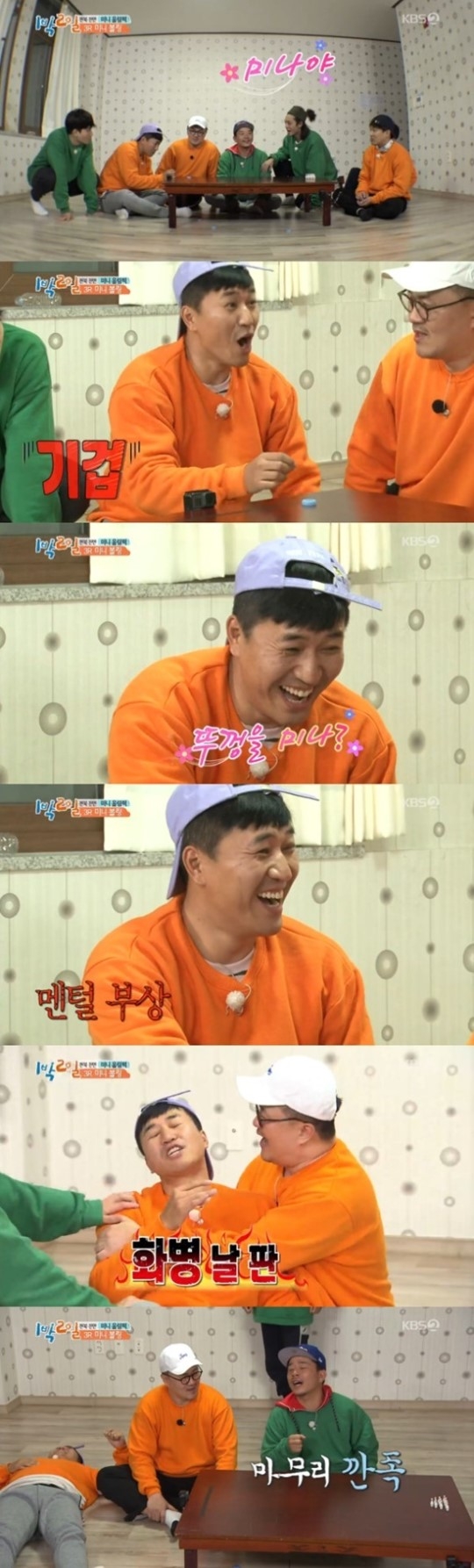 이날 방송에서는 병뚜껑으로 하는 미니 볼링 게임이 진행된 가운데 멤버들의 방해 공작이 시작됐다. 데프콘은 책상을 흔들어 볼링핀을 쓰러뜨리기도 하고, 상대편에게 냄새 공격을 하기도 했다.
