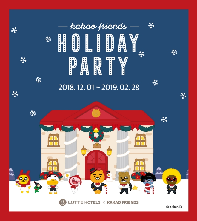 호텔업계 최초로 지난 12월 1일에 오픈한 카카오프렌즈 캐릭터 룸은 롯데호텔월드 7층에 위치한 총 4개의 디럭스 트윈 룸이다. ‘홀리데이 파티(Holiday Party)’ 콘셉트로 꾸며진 객실 내부에 들어서면 캐릭터로 장식된 침대가 가장 먼저 눈에 띈다. 욕실, 창문, 어메니티 등 객실의 소소한 부분까지 카카오프렌즈 캐릭터 8종(라이언, 무지, 프로도, 네오, 어피치, 튜브, 콘, 제이지)으로 디자인됐다.
