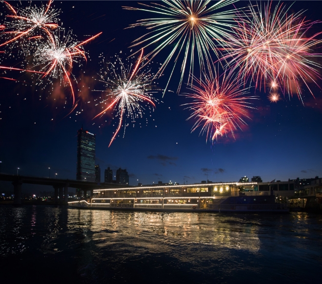 디너 크루즈에서는 크리스마스 이브와 당일 50여가지의 풍성한 뷔페 식사와 와인을 제공하며, 재즈 라이브 공연과 불꽃쇼를 감상할 수 있다.