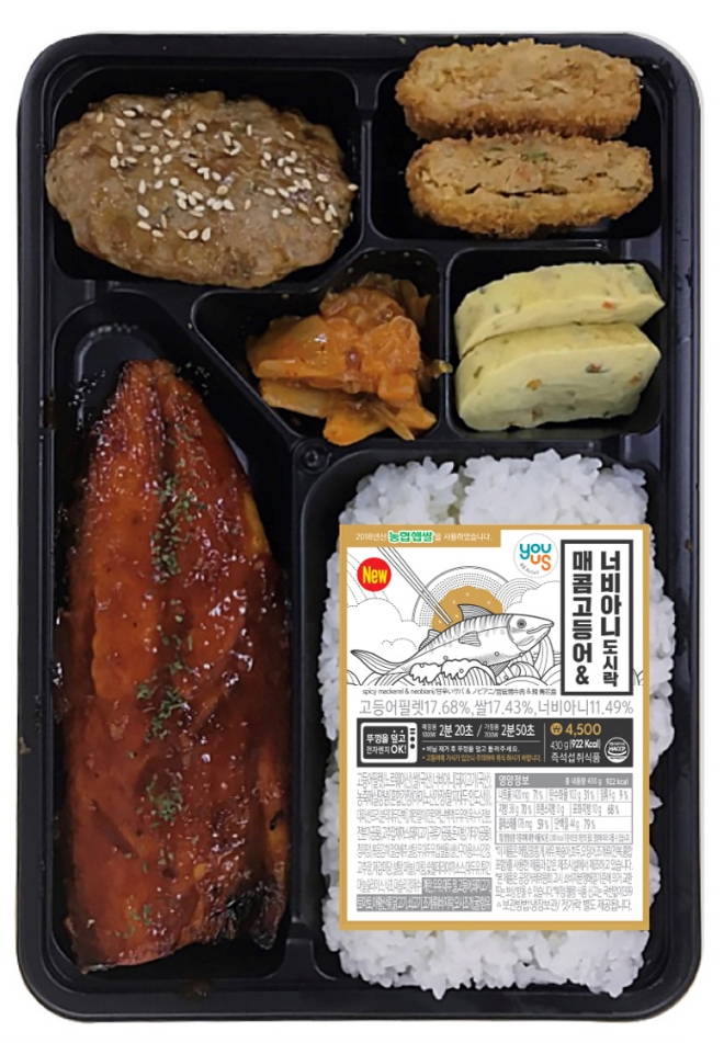 100g 이상(반마리 기준)의 푸짐한 고등어에 매콤한 양념장을 끼얹어 밥과 어울리는 촉촉한 고등어구이 반찬으로 개발했다. 여기에 데리야끼 소스로 맛을 낸 너비아니구이와 고추잡채고로케, 계란말이, 볶음김치 등 다양한 반찬으로 구성해 푸짐한 한 상 콘셉트 도시락으로 선보였다. 가격은 4500원이다.