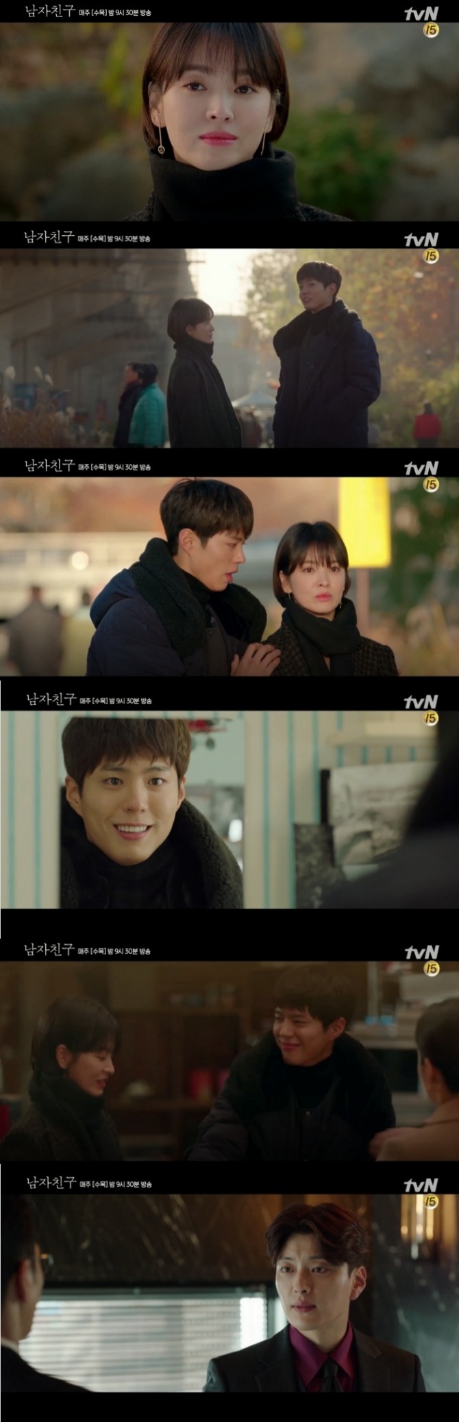 이미지 확대보기12일 오후 방송되는 tvN 수목드라마 '남자친구'(극본 유영아, 연출 박신우) 5회에서는 차수현(송혜교 분)과 김진혁(박보검 분)이 짧은 데이트를 즐기는 가운데 수현의 전남편 정우석(장승조 분)이 진혁에 대한 모든 정보를 가져오라고 지시하며 본격적으로 견제해 긴장감을 높인다.