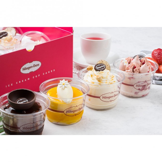 이미지 확대보기하겐다즈에서 처음으로 선보이는 아이스크림 컵케이크 4종은 베스트 플레이버인 스트로베리, 초콜릿, 바닐라, 화이트 피치 & 라즈베리를 활용해 만들어졌다.