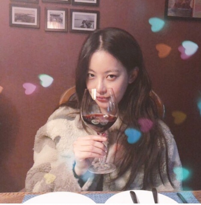 공개된 사진 속 오연서는 와인잔을 들고 카메라를 응시하고 있다. 특히 들고있는 와인잔과 비슷한 오연서의 얼굴 크기가 눈길을 끈다.