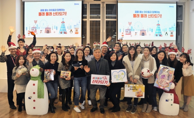 이미지 확대보기한국암웨이는 소외 계층 아동 지원 사회공헌 프로그램 ‘꿈을 품는 아이들’ 활동의 일환으로 ‘2018 몰래 몰래 산타 되기’ 캠페인을 진행한다고 18일 밝혔다.