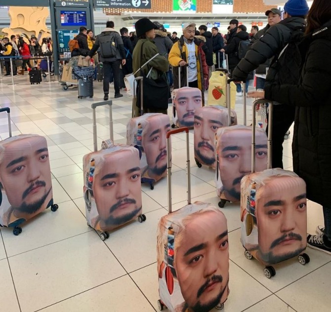해당 게시물에는 일본으로 떠나는 관계자들과 유병재의 모습이 담겨 있고, 그들의 캐리어에 모두 유병재 얼굴이 프린트된 커버가 씌워져 있는 것이 눈에 띈다.