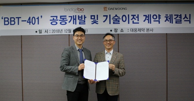 이미지 확대보기대웅제약은 브릿지바이오와 궤양성 대장염(Ulcerative Colitis) 등 염증성 질환치료 신약후보물질 'BBT-401'에 대한 ‘기술 실시권 및 글로벌 완제의약품 생산 판매권의 도입’ 계약을 체결했다.