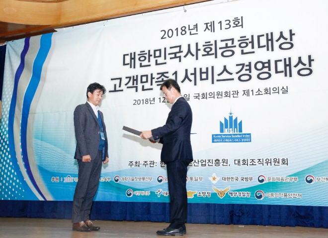 이미지 확대보기롯데쇼핑 e커머스 사업본부(이하 롯데e커머스)는 적극적인 사회공헌활동을 인정받아 ‘2018 제13회 대한민국 사회공헌대상’ 시상식에서 사회봉사부문 국회의장상을 수상했다고 20일 밝혔다.