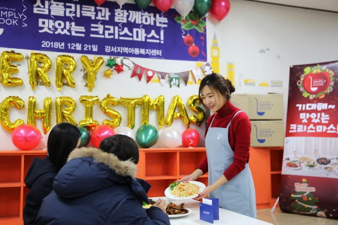 심플리쿡의 이번 식사 후원은 GS리테일의 공식 봉사단인 GS25 강서지역 GS나누미와 손잡고 진행한 것이다. 이날 개최된 크리스마스 파티에는 GS리테일의 심플리쿡 담당 임직원을 비롯한 GS나누미 봉사자 20명과, 강서아동복지센터의 소속 아동 및 관계자 150명 등 총 170명이 참석했다.