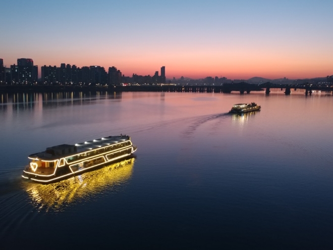 이미지 확대보기이랜드가 운영하는 한강 유람선 이랜드크루즈는 2019년 새해맞이를 위해 다음달 1일 해돋이 크루즈와 떡국 크루즈를 출항한다고 23일 밝혔다. 해돋이 크루즈와 떡국 크루즈는 모두 새해 첫날 오전 7시10분에 여의도 선착장을 출발해 90분간 운항 후 여의도로 회항하는 코스다.