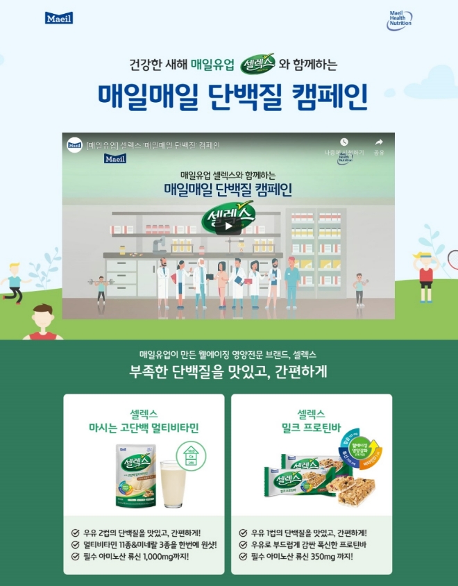 매일유업 셀렉스는 이번 ‘매일매일 단백질 캠페인’ 영상을 제작 및 공개해 3가지 단백질 섭취 가이드를 소개한다.