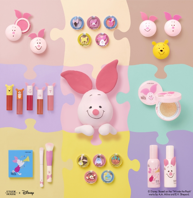 이미지 확대보기에뛰드하우스는 내년 1월 1일 기해년 황금돼지의 해를 맞아 ‘해피 위드 피글렛 컬렉션’을 한정 출시한다고 밝혔다. 디즈니 캐릭터 ‘피글렛’과 콜라보레이션으로 선보이는 에뛰드하우스의 ‘해피 위드 피글렛 컬렉션’은 피글렛을 패키지 디자인에 적용했다.