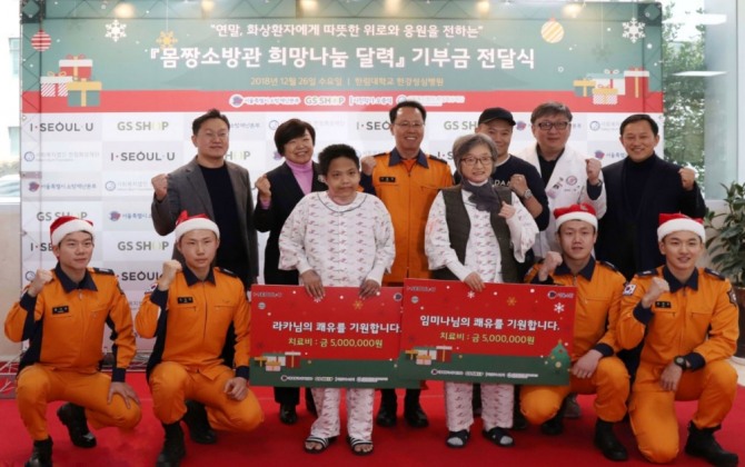 이미지 확대보기행사에서는 전욱 한림대학교한강성심병원장, 윤현숙 한림화상재단 이사장, 서울소방재난본부 관계자, 김준완 GS SHOP 상무 및 오중석 사진작가 등 30여 명이 참석해 환자에게 기부금 및 치료금을 전달하고 병동을 방문하며 응원메시지를 전했다.