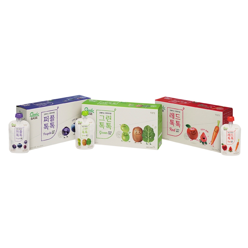 ‘자연이키운 퍼플 톡톡’은 마키베리, 블루베리 등 보라색 과일에 사과와 배를 더했으며, ‘자연이키운 그린 톡톡’은 케일, 브로콜리 등 녹색 채소에 청포도, 키위 등을 더해 만들었다.‘자연이키운 레드 톡톡’은 당근과 레드비트에 체리, 딸기 등을 더해 만든 제품이다.
