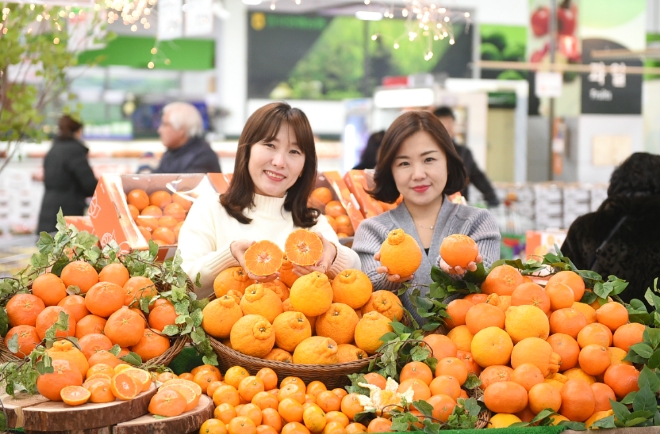 하나로마트 양재점에서는 제주도산 한라봉(3㎏) 3만9900원→2만9800원, 레드향(3㎏) 3만9900원→3만3000원, 레드향(2㎏) 2만1500원→1만7900원, 감귤(불로초/3㎏) 3만2000원→2만8000원, 써니트(2㎏) 1만9800원→1만8900원 등을 선보인다.