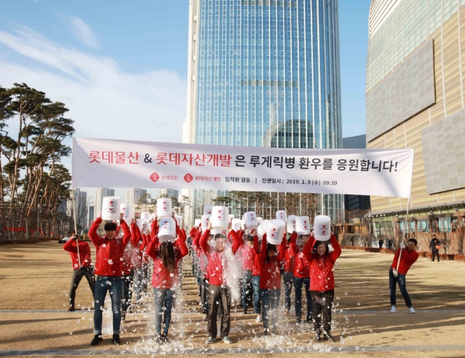 이미지 확대보기롯데자산개발과 롯데물산은 임직원들이 1월 한파 속에서 루게릭병(근위축성 측삭경화증) 환자를 응원하기 위한 ‘아이스버킷 챌린지’에 동참했다고 9일 밝혔다.