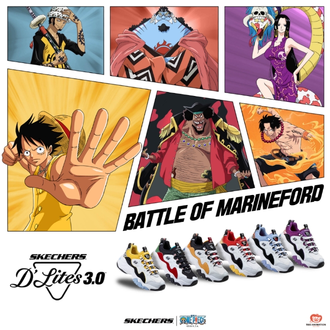 올해는 루피, 에이스, 헨콕 등 ‘원피스 덕후’라면 누구나 명장면으로 손꼽는 ‘정상 결전’ 에피소드의 인기 캐릭터 대표 컬러인 주황, 초록, 보라색 등을 딜라이트 운동화에 입혔다. 가격은 9만9000원으로 출시되는 6종 모두 동일하며 구매하는 고객에 한해 원피스 피규어 증정행사도 준비했다.
