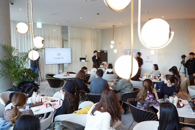 이미지 확대보기피부 전문 이너뷰티 브랜드 ‘큐브미(Cube Me)’는 지난 8일 브랜드 런칭 쇼케이스를 아모레퍼시픽그룹 세계 본사에서 열었다고 밝혔다. 이날 쇼케이스 현장에서는 큐브미의 브랜드 스토리 소개와 더불어 주요 제품들에 대한 이야기를 듣고 직접 체험해보는 시간을 가졌다.