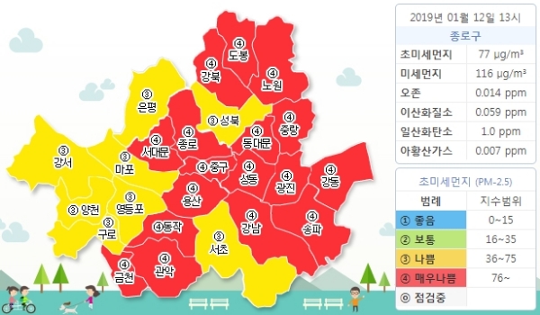또 서울시는 호흡기나 심혈관질환이 있는 시민은 외출을 자제하고, 부득이하게 실외활동을 해야 할 경우 보건용 마스크를 착용해야 한다고 주의를 당부했다.