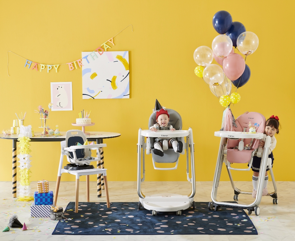 일반형은 높이가 80cm부터 170cm까지 9단계로 조절이 가능해 아이의 성장에 맞춰 조절할 수 있다. 등받이와 발받침도 각도가 조절돼 식사, 놀이, 수면 등 다양한 활동에 사용이 가능하다. 또한 아이의 온 몸을 감싸주는 5점식 안전벨트로 안전성을 더욱 높였다. 스윙형은 일반형의 기능에 수동형 흔들요람침대 기능까지 더했다. 스윙형 역시 높이를 97cm에서120cm까지 7단계로 조절이 가능하다. 부스터형은 2.8kg으로 휴대 가능해 활용도가 높다. 의자를 지지하는 프레임은 항공기 소재로 쓰이는 알루미늄을 사용했고, 식판은 젖병에 쓰이는 무독성 플라스틱(폴리프로필렌)을 썼다. 좌판 시트 역시 생활 방수가 되고 오염에 강하며 세척 관리가 용이한 PU(폴리우레탄) 가죽을 사용했다.
