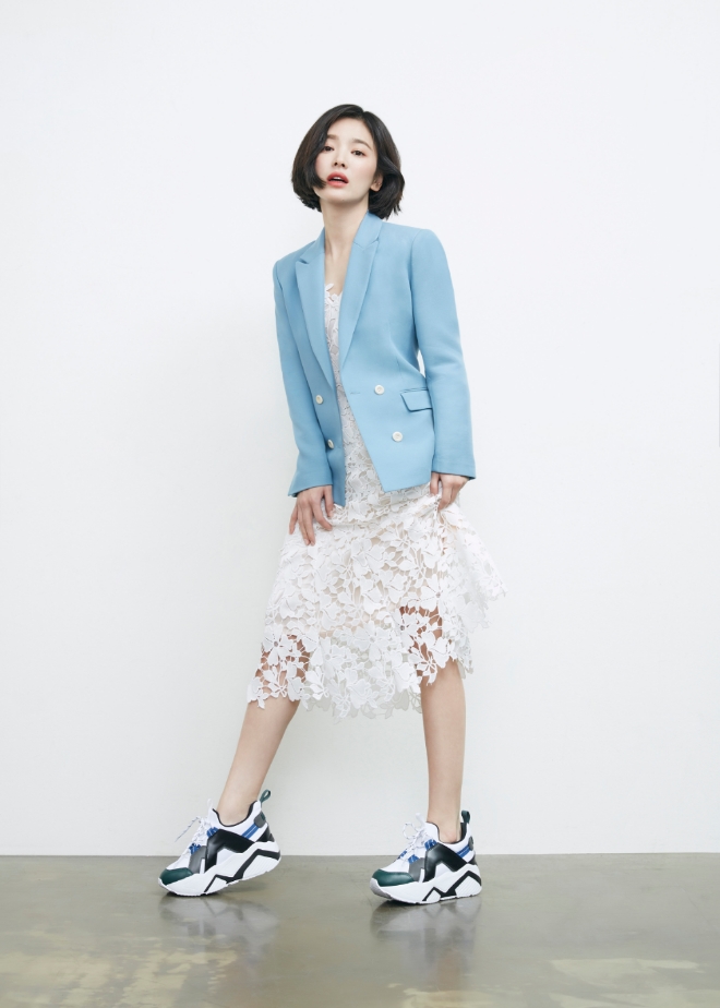 이미지 확대보기코오롱인더스트리FnC부문이 전개하는 여성 슈즈 브랜드 슈콤마보니는 모델 송혜교 효과를 톡톡히 보고 있다고 16일 밝혔다. 지난달 17일부터 진행한 ‘풀문 스니커즈’와 ‘풀문 슬립온’의 판매가 2주 만에 1차 물량을 모두 소진했다.