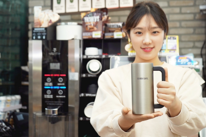 이미지 확대보기세븐일레븐은 자체 원두커피 브랜드 세븐카페를 활용한 '세븐카페 텀블러(1만5000원)'를 선보인다고 16일 밝혔다. '세븐카페 텀블러'는 보온과 냉온이 가능한 스틸 소재의 텀블러로 보냉 효과를 높이고 위생적 사용할 수 있게 하기 위해 별도 뚜껑이 포함돼 있다.