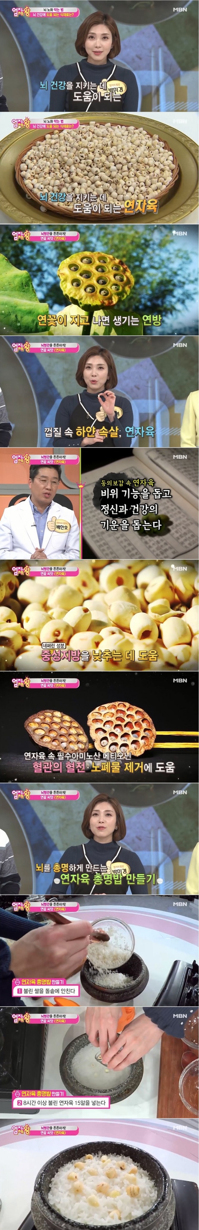 엄지 명의 박미경 한의사는 뇌건강에 도움이 되는 식재료로 뇌의 노화를 막고 총명하게 해주는 효과가 있는 연자육을 공개했다.