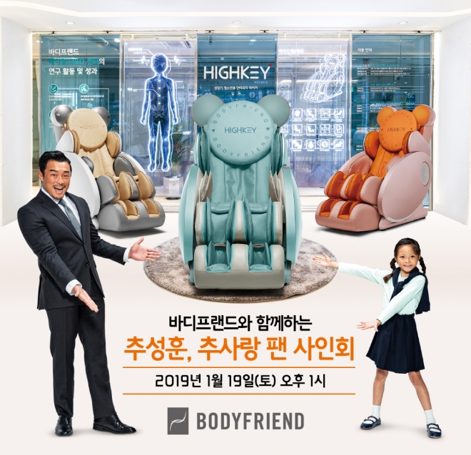이미지 확대보기바디프랜드는 오는 19일 광고모델 추성훈·추사랑 팬사인회, ‘대치동 샤론코치’ 이미애 샤론코칭&멘토링연구소 대표 특별강연 등으로 구성된 성장연구소 겸 대치점 직영전시장의 오픈파티를 연다고 밝혔다.
