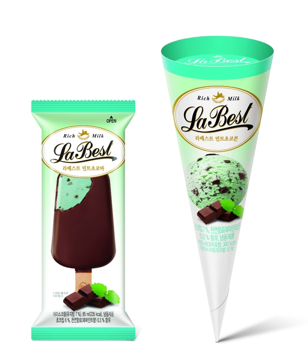 라베스트 민트초코콘은 민트 아이스크림에 초코칩이 들어있고, 그 위에 초코시럽과 쿠키칩을 토핑했다. 민트초코바는 초코칩이 들어있는 민트 아이스크림에 초콜릿을 두껍게 코팅했다.